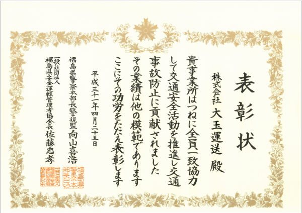 2019.05.30 表彰されました 福島県警・福島交通安全管理者協会様より表彰されました。 今後も交通安全につとめてまいります。 ウイングトレ-ラの新車お披露目です!! 栃木営業所です。はじめまして!!